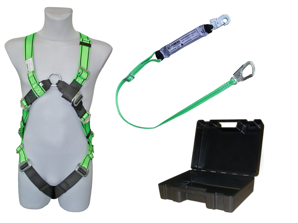 Das Hubarbeitsbühnenset Profi ist geeignet als Auffang- und Rückhaltesystem, das Verbindungsmittel ist speziell geprüft für die Verwendung in Hubarbeitsbühnen. Der Gurt hat eine Halteöse im Schulterbereich und Halteöse im Brustbereich. Der Gurt hat mehrere Verstellmöglichkeiten und kann universell dem Körper angepasst werden. Zum Lieferumfang gehört ein einstellbares Verbindungsmittel mit einem Alu-Karabinerhaken und einer Länge von 1,8 Meter zur Arbeitspositionierung. Zur optimalen Aufbewahrung erhalten Sie einen Kunststoffkoffer in schwarz.